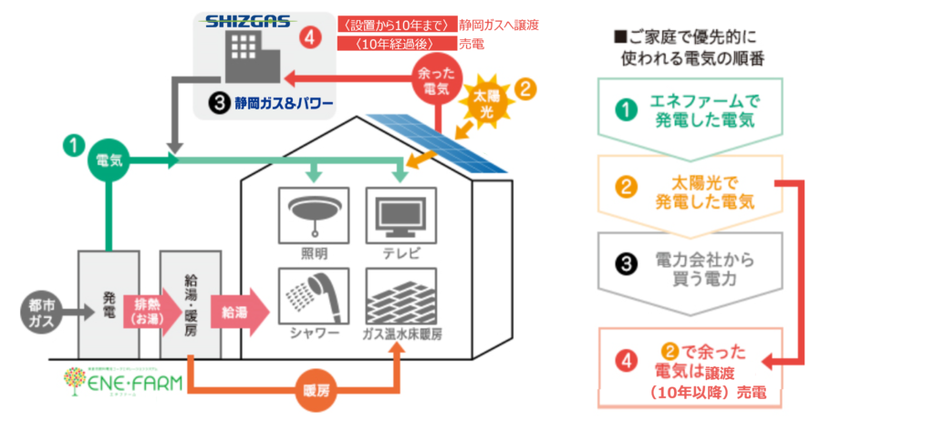 ZEHの基準を満たすためには、外皮性能に加え、一次エネルギー消費量を削減するために、高効率な設備や太陽光発電を導入することになりますが、「SHIZUOKA環境みらいの会」では、実質的に初期投資をゼロにする第三者所有モデルを用いた太陽光発電と、家庭用燃料電池エネファームのセットを「ふじのくにZEH推進モデル」として推奨しています。