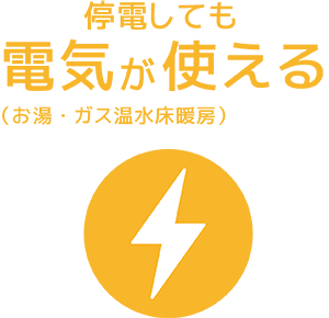 停電しても、太陽光発電で発電していれば、専用コンセントから一定量の電気を利用することが可能です。また、家庭用燃料電池エネファームがあれば、太陽光発電が発電していない場合にも、発電を継続してくれ、専用コンセントから最大500W(最長8日間)の電気の利用が可能ですし、発電と一緒に作られるお湯も利用できます。